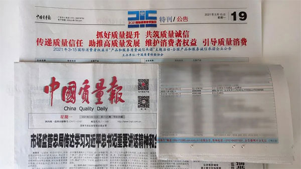 《中國(guó)質(zhì)量報(bào)》、《中國(guó)消費(fèi)者報(bào)》、中國(guó)經(jīng)濟(jì)網(wǎng)、中國(guó)質(zhì)量網(wǎng)、中國(guó)消費(fèi)網(wǎng)等多家權(quán)威媒體均予以集中展示和公告。不僅如此,公司還獲得了“全國(guó)質(zhì)量誠(chéng)信先進(jìn)企業(yè)”的榮譽(yù)稱號(hào),這是需要經(jīng)過(guò)中檢協(xié)長(zhǎng)達(dá)三年的全方位監(jiān)督檢查合格才能獲得的榮譽(yù)稱號(hào),其含金量可見(jiàn)一斑!