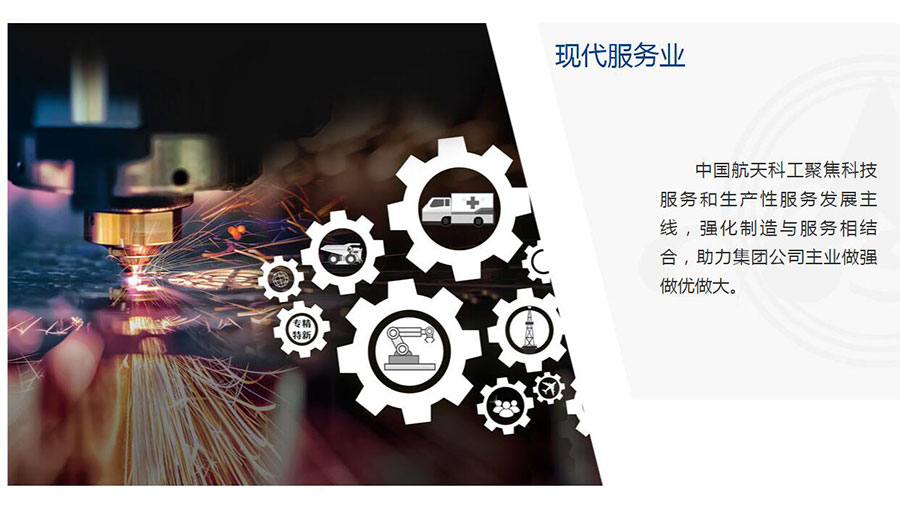 發(fā)揮自身資源稟賦和能力優(yōu)勢,體現(xiàn)軍工技術(shù)服務溢出效應,圍繞主責主業(yè)創(chuàng)新發(fā)展國際化服務、工程服務、科技服務、生產(chǎn)性服務,促進集團公司現(xiàn)代化服務業(yè)體系化、專業(yè)化、市場化發(fā)展。