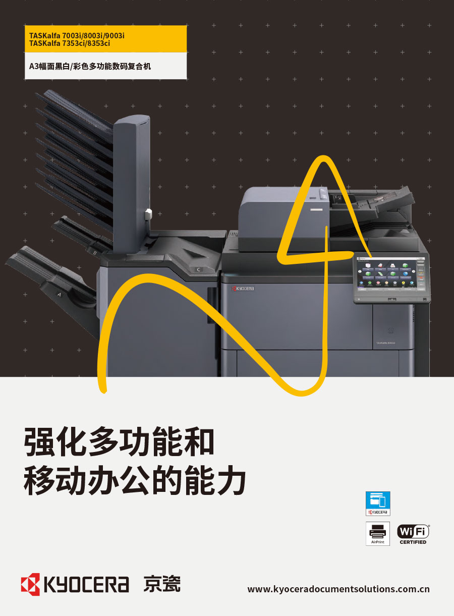 京瓷株式會社由稻盛和夫先生創(chuàng)辦于1959年。“敬天愛人”社訓(xùn)貫徹集團(tuán)各分公司運營中。京瓷辦公信息系統(tǒng)(中國)有限公司主要負(fù)責(zé)彩色和黑白數(shù)碼復(fù)合機(jī)、彩色和黑白數(shù)碼激光打印機(jī)、生產(chǎn)型彩色噴墨數(shù)碼印刷系統(tǒng)、辦公解決方案等系列辦公自動化設(shè)備的銷售。京瓷產(chǎn)品憑借其更低的后期總體使用成本,可靠的長壽命感光鼓,獲得眾多政府、企業(yè)的青睞,在中國的市場占有率逐年穩(wěn)步提升。