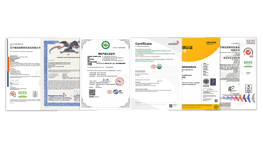 海辰園區(qū)是國內(nèi)領(lǐng)先通過寵物食品雙有機(jī)認(rèn)證的工廠,并擁有中國國家標(biāo)準(zhǔn)、美國NOP有機(jī)寵物食品、FDA、BRC全球食品標(biāo)準(zhǔn)安全、ISO質(zhì)量管理體系、環(huán)境管理體系、職業(yè)健康安全管理、食品安全管理等多項體系認(rèn)證。