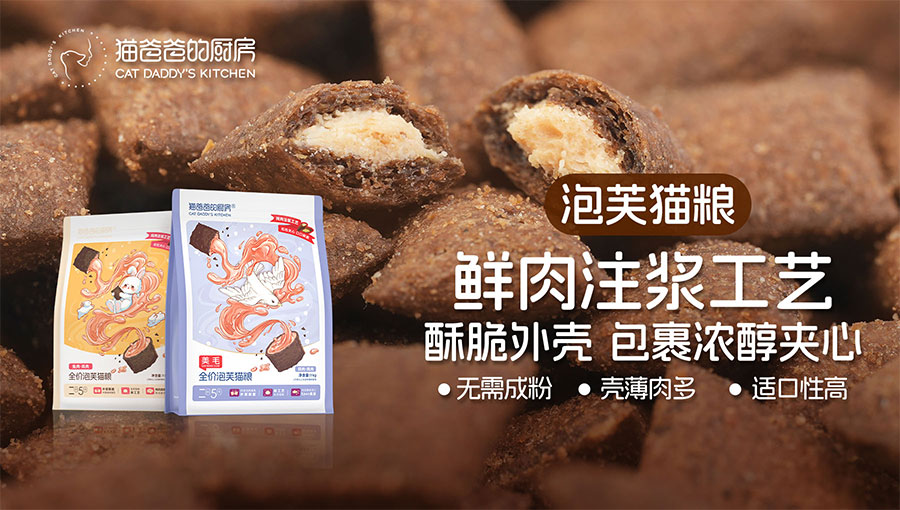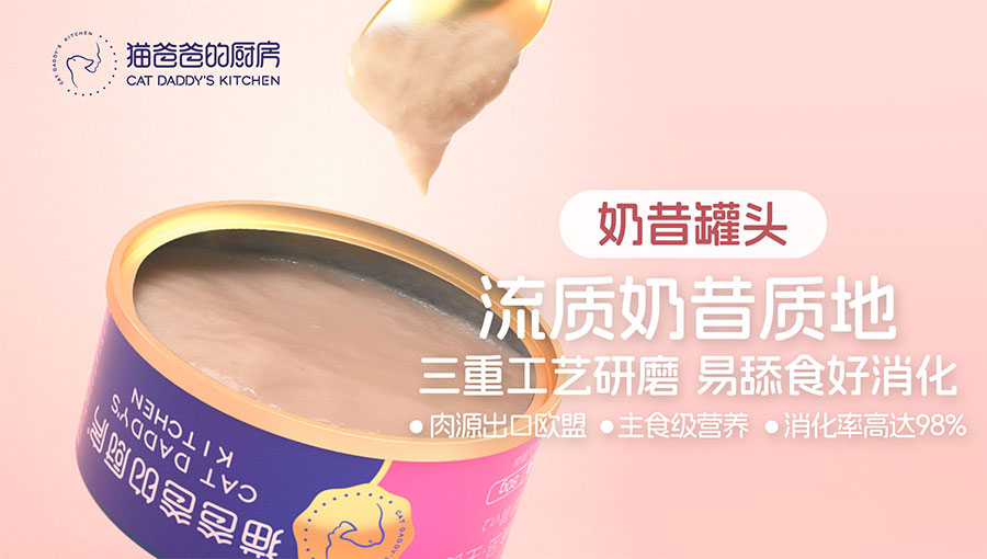 2015年,面對十年前參差不齊的貓糧品質(zhì),品牌創(chuàng)始人貓爸在貼吧分享的自制貓飯被網(wǎng)友瘋搶,于是,“貓爸爸的廚房”就此誕生。