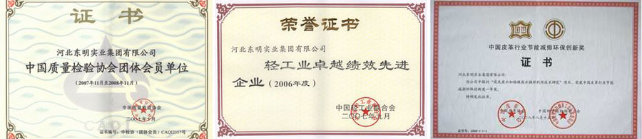 河北東明實業(yè)集團(tuán)有限公司創(chuàng)建于1996年,集團(tuán)下屬河北東明皮革有限公司、河北東明制衣有限公司、河北東明牛皮制革有限公司、東明金興制衣有限公司、東明酒店、東明商廈、河北東明中硅科技有限公司、辛集市東明房地產(chǎn)開發(fā)有限公司八個子公司。集團(tuán)是按高標(biāo)準(zhǔn)、高起點、嚴(yán)要求興建的辛集地方特色產(chǎn)業(yè),經(jīng)過幾年的不懈努力,已發(fā)展成擁有職工3000人,制革能力和產(chǎn)量在全國制革業(yè)中居前位,其中綿羊皮服裝革產(chǎn)銷量列第一位的中型民營企業(yè)。獲得國家星火計劃獎、國家農(nóng)副產(chǎn)品加工龍頭企業(yè)、國家優(yōu)秀鄉(xiāng)鎮(zhèn)企業(yè)、全國外商投資先進(jìn)企業(yè)、全國雙愛雙評先進(jìn)企業(yè);獲河北省著名商標(biāo)、河北省名牌、河北省質(zhì)量效益型先進(jìn)企業(yè)、河北省重合同守信用單位、河北省百強(qiáng)企業(yè)和石家莊市50強(qiáng)企業(yè)等80多個國家級獎項和榮譽稱號。集團(tuán)在皮革行業(yè)樹立的良好聲譽使東明成為高品質(zhì)的代名詞,可信賴的經(jīng)營作風(fēng)更獲得世界各地客戶贊賞!集團(tuán)近年來不斷加大技改投入,先后投入3個億人民幣進(jìn)行技術(shù)改造,投入2000萬進(jìn)行環(huán)保污水處理,經(jīng)過不斷的創(chuàng)新改造,在環(huán)境保護(hù)和環(huán)境治理上取得了可喜成就。其中,無灰浸鞣、廢灰夜循環(huán)利用、廢鉻液循環(huán)利用工藝技術(shù),獲河北省科技廳科技成果獎,并在全國皮革行業(yè)推廣,取得豐厚的企業(yè)經(jīng)濟(jì)效益和社會效益。2009年獲全國輕工行業(yè)“節(jié)能減排環(huán)保創(chuàng)新獎”。獲得全國“五一勞動獎狀”。河北東明實業(yè)集團(tuán)有限公司產(chǎn)品質(zhì)量獲得國家真皮生態(tài)皮革稱號、辛集市利稅大戶。近年來向社會捐資500萬用于公益事業(yè)?,F(xiàn)在集團(tuán)勞動關(guān)系和諧,曾被國家評為“雙評雙愛”先進(jìn)單位。多次被省評為“重合同守信用”企業(yè),客戶對產(chǎn)品質(zhì)量滿意率一直在99%以上,客戶對產(chǎn)品售后服務(wù)滿意度在99%以上。集團(tuán)成立以來致力于生產(chǎn)高質(zhì)量的產(chǎn)品,“以誠信為根本,視質(zhì)量為生命”是東明人一貫遵循的準(zhǔn)則,也正是對這一目標(biāo)的不懈追求使公司不斷的發(fā)展壯大。集團(tuán)生產(chǎn)的綿羊服裝革,以其色澤均勻、手感柔軟著稱,不僅在國內(nèi)有很高的聲譽,還贏得了國外許多廠家的青睞,已打入美國、加拿大、韓國、俄羅斯、香港等國外市場。