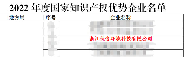近日,國家知識(shí)產(chǎn)權(quán)局發(fā)布了《關(guān)于確定2022年新一批及通過復(fù)核的國家知識(shí)產(chǎn)權(quán)示范企業(yè)和優(yōu)勢(shì)企業(yè)的通知》通知,浙江優(yōu)食環(huán)境科技有限公司榮獲“2022年度國家知識(shí)產(chǎn)權(quán)優(yōu)勢(shì)企業(yè)”的稱號(hào)。