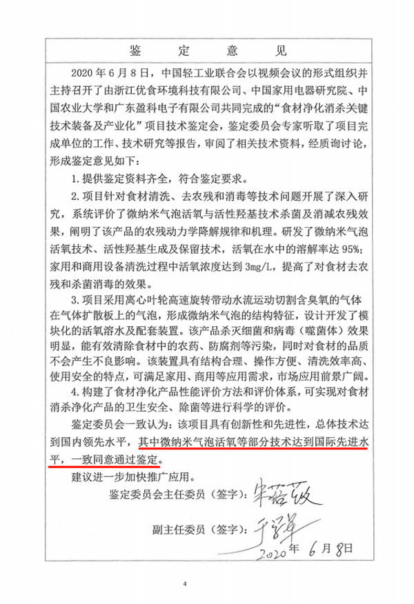 具有自主知識(shí)產(chǎn)權(quán)的“微納米氣泡活氧羥基”(UISH MOH+ ?)技術(shù)被中國輕工業(yè)聯(lián)合會(huì)鑒定為國際先進(jìn)。