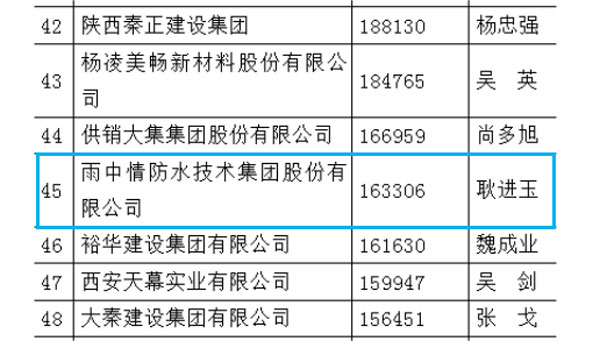 載譽(yù)而歸 | 第45名,雨中情連續(xù)三年上榜陜西民營(yíng)50強(qiáng)企業(yè)