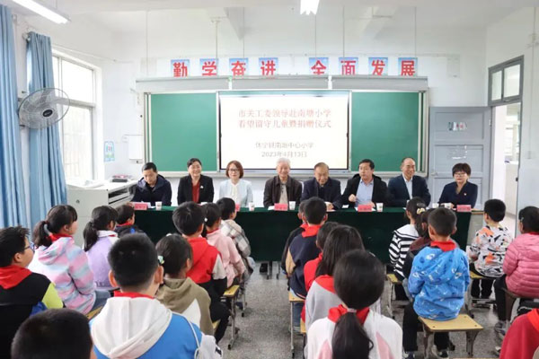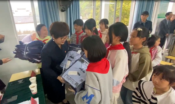 為積極響應(yīng)市關(guān)工委關(guān)心下一代工作的號召,4月13日下午,安徽永峰制衣有限公司總經(jīng)理葉建萍參加了由市關(guān)工委牽頭組織黃山日報社、市婦聯(lián)、休寧縣關(guān)工委等多個部門參加的看望休寧縣南塘小學(xué)留守兒童和捐贈校服活動。