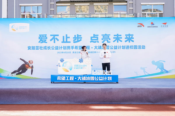 2023年4月20日,安踏茁壯成長公益計(jì)劃攜手希望工程·大靖冰雪公益計(jì)劃進(jìn)校園啟動儀式,在黑龍江省佳木斯市前進(jìn)區(qū)第十一小學(xué)(下簡稱十一小學(xué))舉行。通過體教融合,深耕青少年體育公益,發(fā)展冰雪運(yùn)動,為青少年茁壯成長賦能。安踏集團(tuán)為十一小學(xué)全體師生捐贈了安踏裝備包,捐建了武大靖-安踏夢想中心,體育教師接受了安踏體育課教師培訓(xùn)。短道速滑奧運(yùn)冠軍武大靖重返兒時母校,分享冠軍故事,首次推出大靖冰雪課。安踏集團(tuán)執(zhí)行董事、聯(lián)席CEO吳永華,安踏集團(tuán)副總裁李玲,共青團(tuán)黑龍江省委書記徐長勇,黑龍江省佳木斯市委副書記、代市長王鐵,上海真愛夢想公益基金會理事長潘江雪,共同出席活動,央視頻進(jìn)行了全程直播。