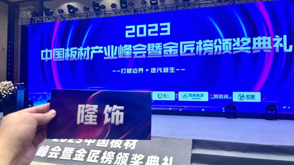 7月1日,中國木業(yè)網(wǎng)主辦的“2023中國板材產(chǎn)業(yè)峰會暨金匠榜頒獎典禮”于在杭州隆重開幕。本次峰會吸引了眾多行業(yè)精英和專家學(xué)者的關(guān)注,成為板材產(chǎn)業(yè)的盛事。在此次盛會上,備受矚目的隆飾板材憑借其卓越的產(chǎn)品力和服務(wù)力,榮獲家具板十大品牌的殊榮。