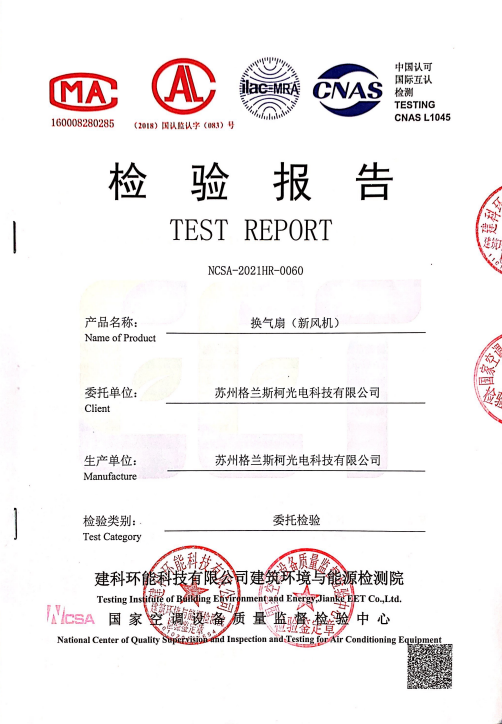 超低能耗新風(fēng)系統(tǒng)檢測報告
