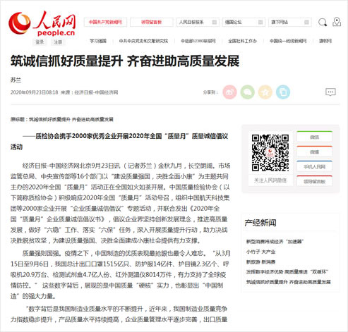 人民網(wǎng):筑誠信抓好質(zhì)量提升 齊奮進(jìn)助高質(zhì)量發(fā)展——質(zhì)檢協(xié)會攜手2000家優(yōu)秀企業(yè)開展2020年全國“質(zhì)量月”質(zhì)量誠信倡議活動