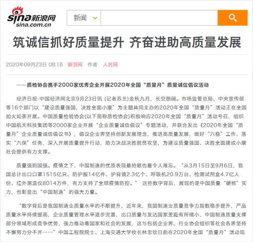 新浪網(wǎng):筑誠信抓好質(zhì)量提升 齊奮進(jìn)助高質(zhì)量發(fā)展——質(zhì)檢協(xié)會攜手2000家優(yōu)秀企業(yè)開展2020年全國“質(zhì)量月”質(zhì)量誠信倡議活動