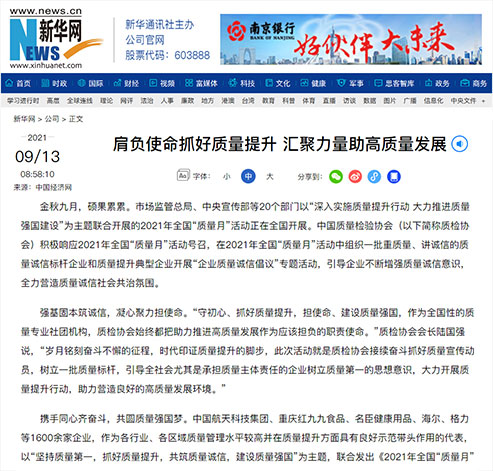 新華網(wǎng):肩負使命抓好質(zhì)量提升 匯聚力量助高質(zhì)量發(fā)展